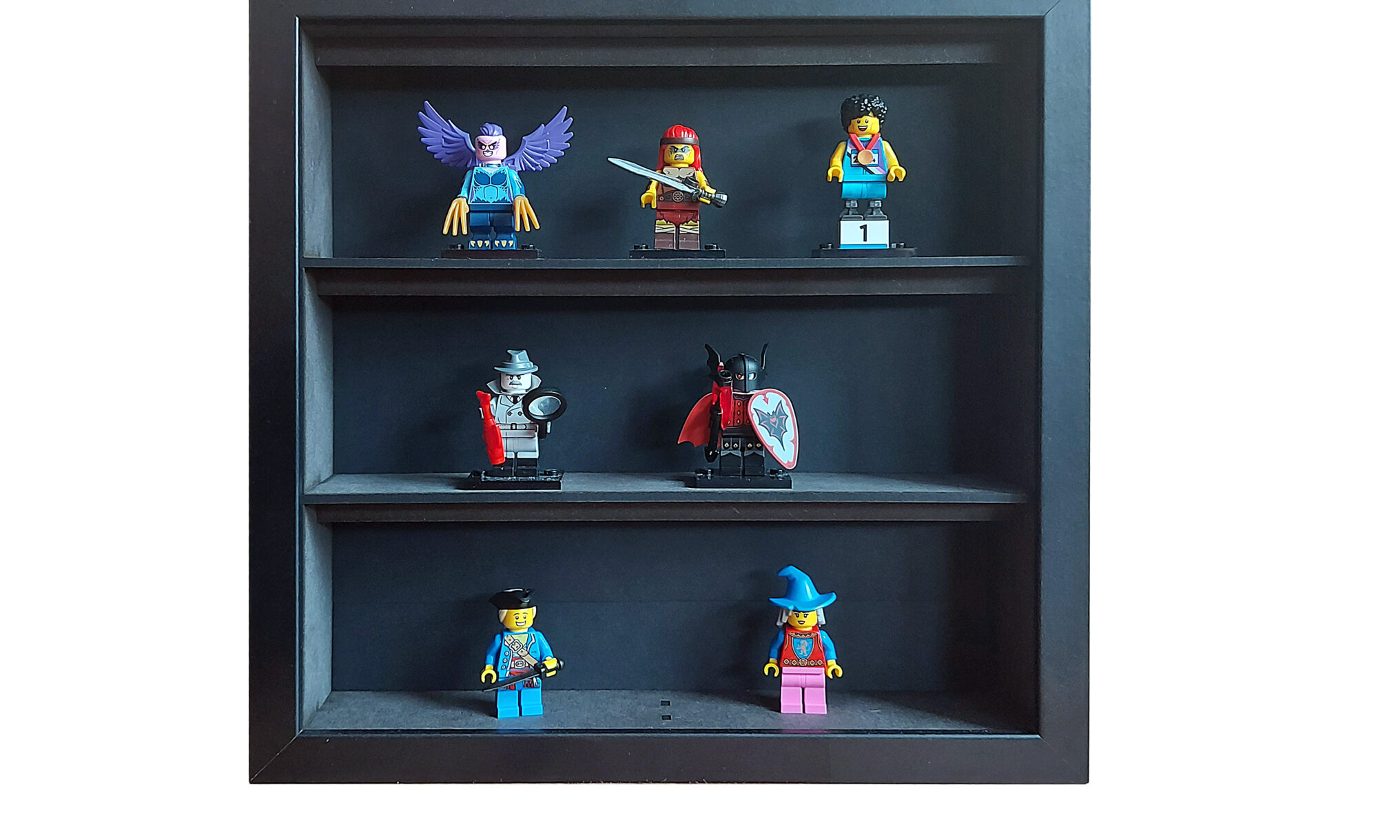 Enhance your walls with this stylish LEGO mini fig display, specifically for the IKEA SANNAHED picture frame (25x25cm)