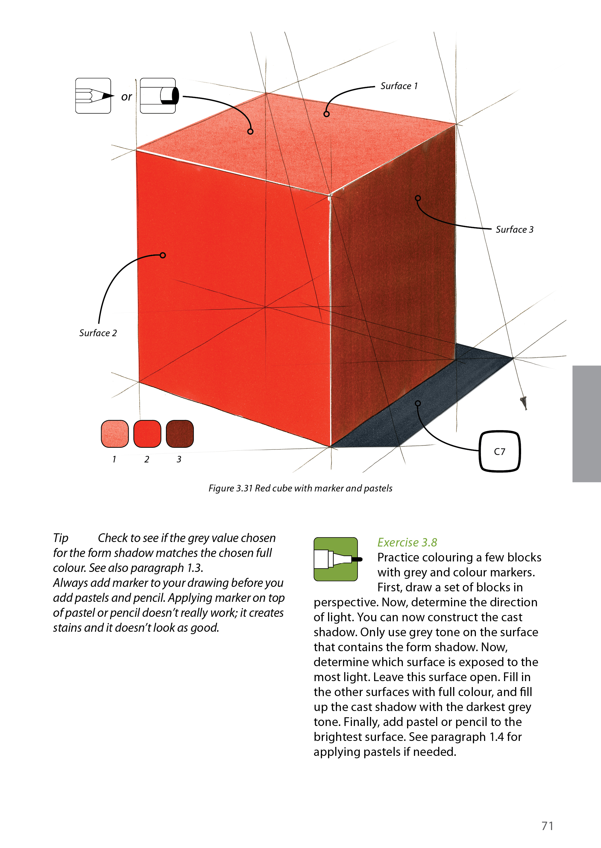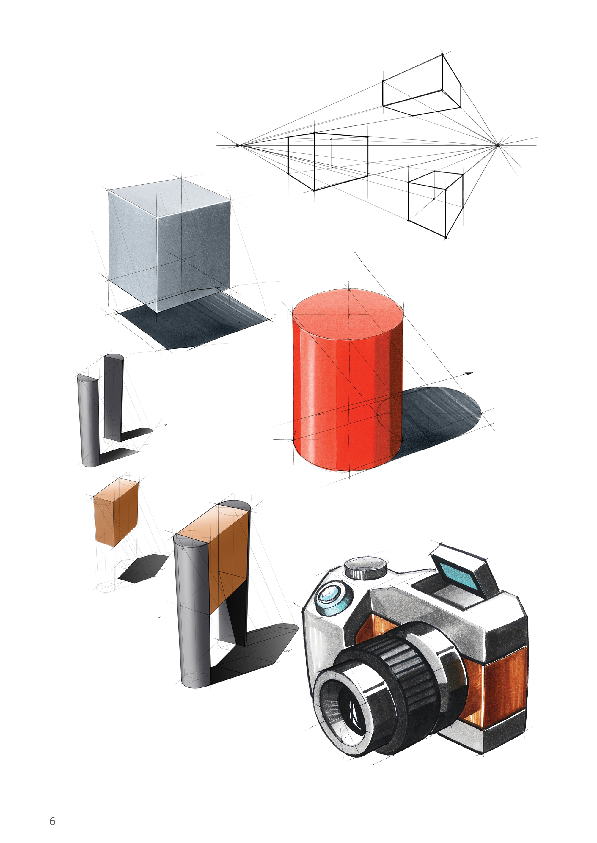 This book covers the basics of drawing products in perspective. Instead of advanced concept sketches of cars and ships, expect the important aspects of various types of perspective, as well as instructions on how to properly draw and colour simple blocks and cylinders in order to create the illusion of three-dimensional reality, and combining different basic volumes into one simple product. All materials used in the book are common in the world of product design and engineering.